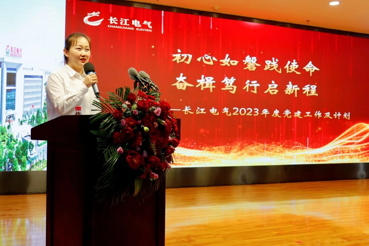 大會在莊嚴肅穆的國歌聲中,拉開帷幕。長江電氣黨委委員張作頓主持大會,首先匯報了長江電氣2023年新發展黨員情況。