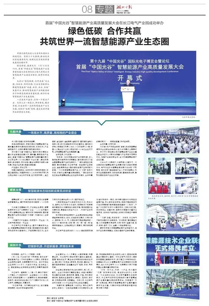 5月19日,湖北日報專題報道首屆“中國光谷”智慧能源產業高質量發展大會。