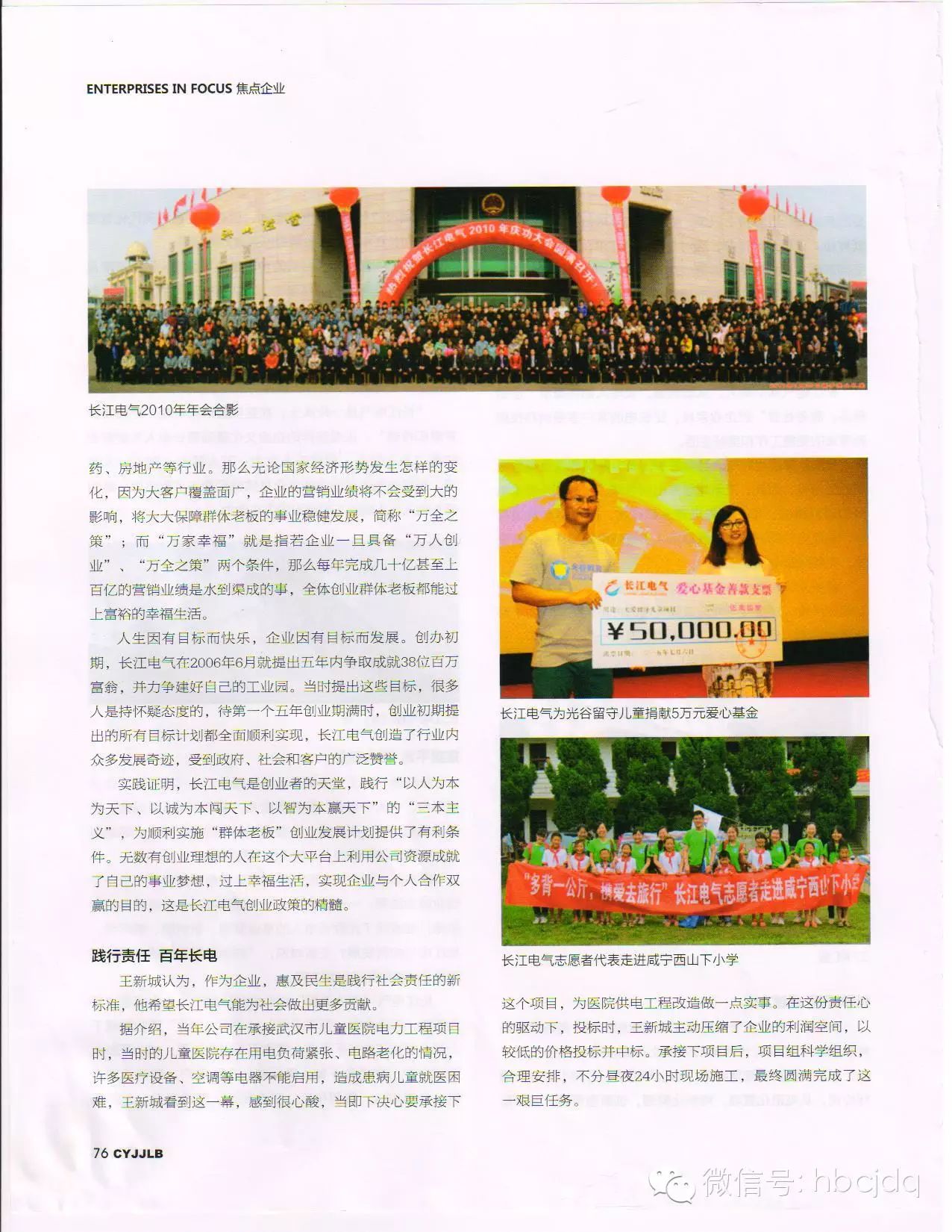 長江電氣董事長王新城接受《創業家俱樂部》雜志專訪