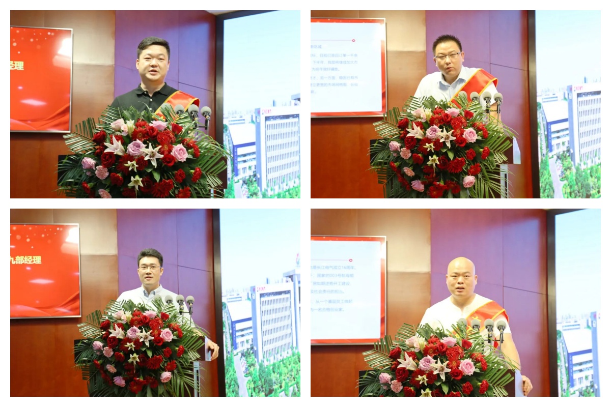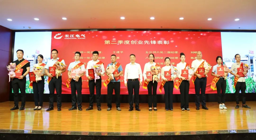 百舸爭流,奮楫者先。上半年雖然面臨經濟下行壓力,長江電氣創(chuàng)業(yè)先鋒們,仍意志堅定,逆勢而上,奮力拼搏。大會還表彰了創(chuàng)業(yè)發(fā)展公司2022年第二季度12位訂單過千萬元創(chuàng)業(yè)先鋒,創(chuàng)業(yè)一公司王建平總經理、創(chuàng)業(yè)二公司邱露經理、創(chuàng)業(yè)四公司唐鵬程經理、創(chuàng)業(yè)九公司吳立明經理四位80、90后創(chuàng)業(yè)家作為創(chuàng)業(yè)先鋒代表,分享了他們“百折不撓,敢為人先”的創(chuàng)業(yè)故事。