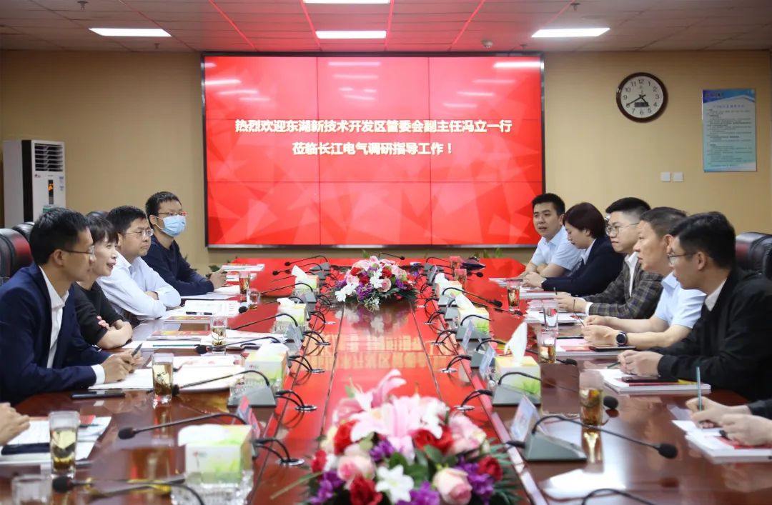 5月19日,武漢東湖高新區管委會副主任馮立一行赴長江電氣走訪調研,精準對接企業需求,助力企業高質量發展。東湖高新區企服局、統計局、光電園相關負責人陪同調研。