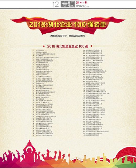 7月20日,湖北省企業聯合會、湖北省企業家協會舉辦“2018湖北企業100強發布會暨2018年理事會”,第10次向社會發布湖北企業100強。湖北長江電氣有限公司榮獲“2018湖北制造業企業100強”。