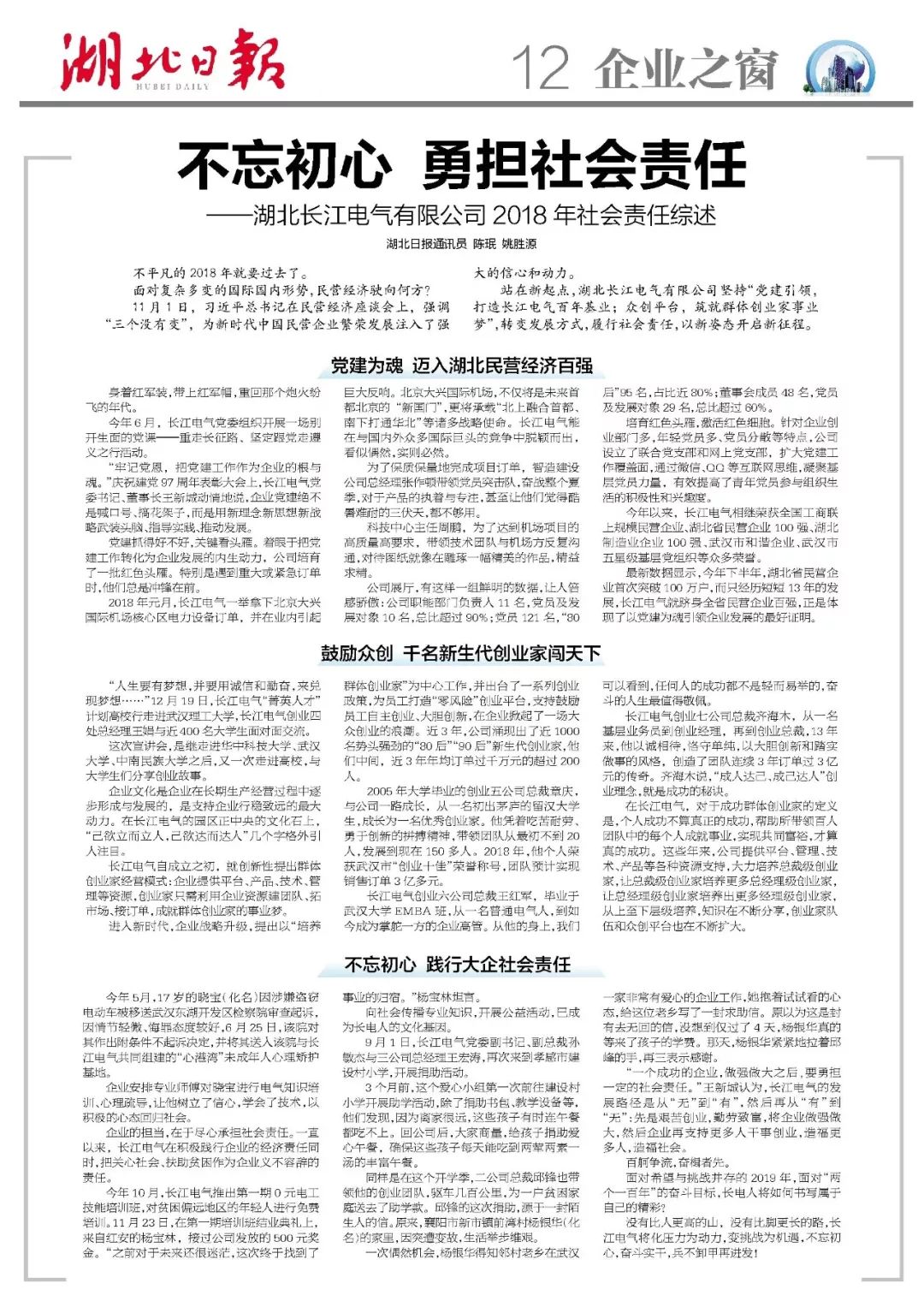 —湖北長江電氣有限公司 2018 年社會責任綜述