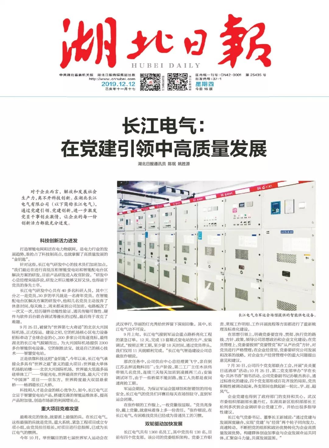 《湖北日報》報道|長江電氣: 在黨建引領中高質量發展
