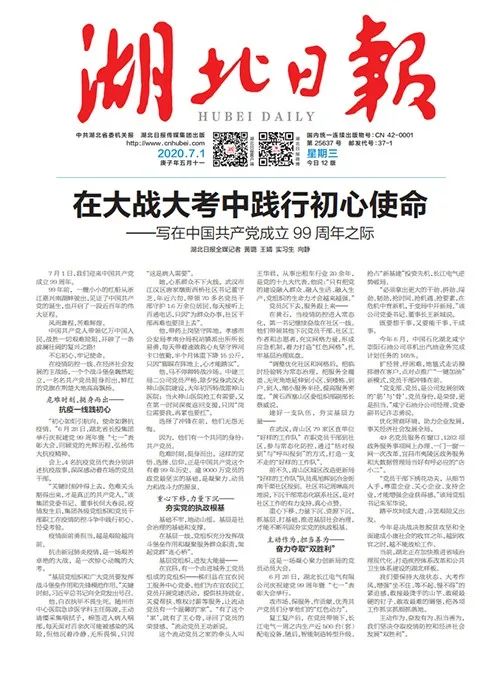 《湖北日報》寫在中國共產黨成立99周年之際|在大戰大考中踐行初心使命