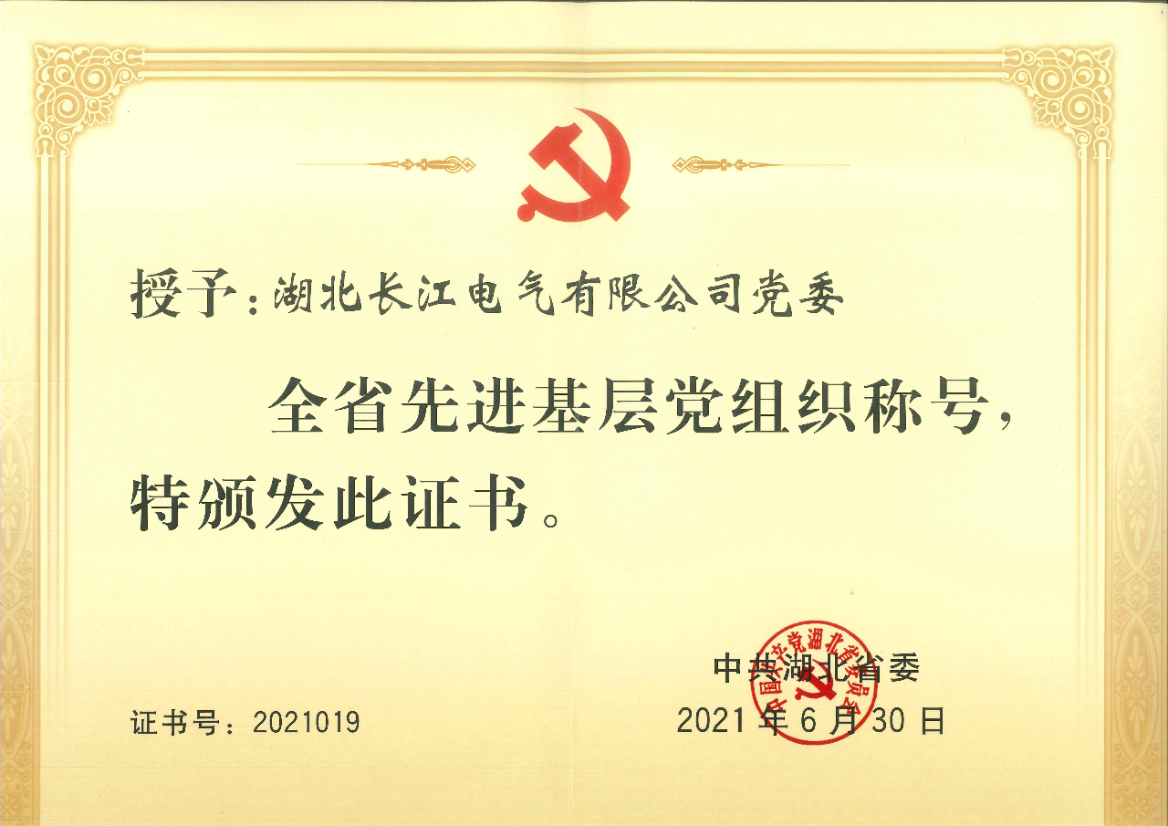 湖北長江電氣有限公司黨委榮獲“湖北省先進基層黨組織”稱號。