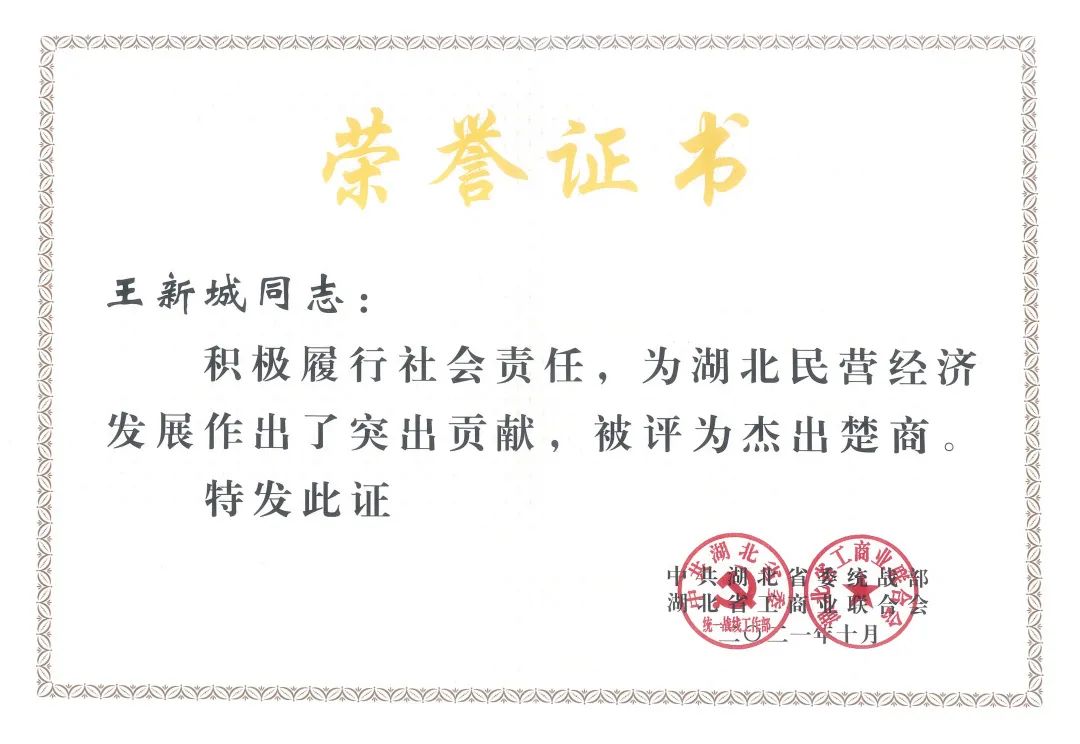 楚商大會上,隆重表彰湖北省100名優秀中國特色社會主義事業建設者、宣傳推介100名杰出楚商,激勵大家擔當作為、勠力同心、奮發進取,書寫無愧于時代的絢麗篇章。湖北長江電氣有限公司黨委書記、董事長王新城榮獲湖北省100名優秀中國特色社會主義事業建設者、100名杰出楚商。