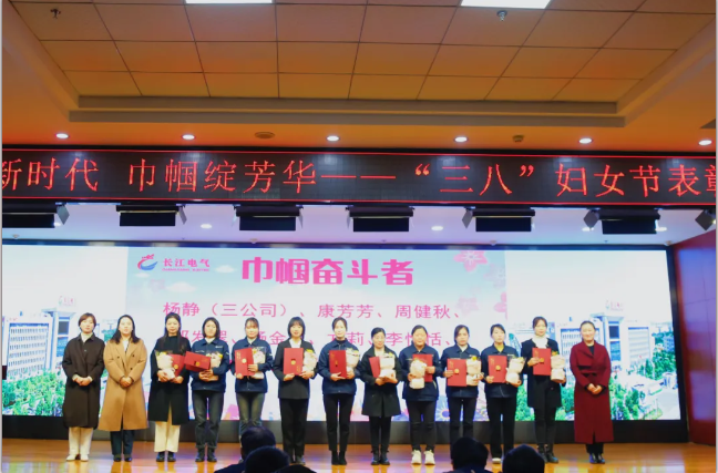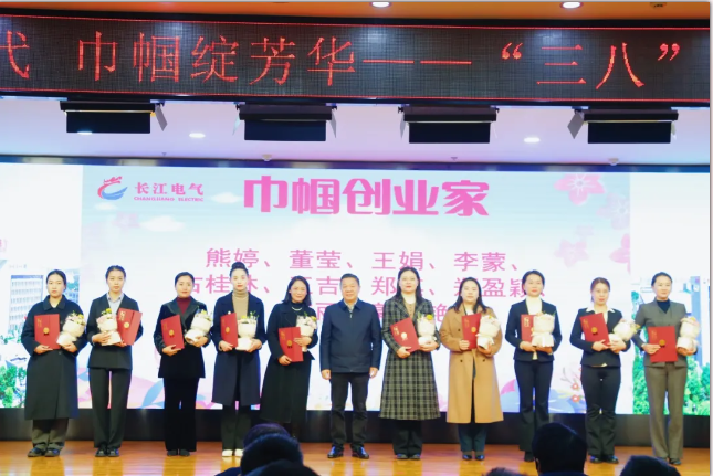 表彰大會上,長江電氣婦聯主席陳珉作婦聯工作報告,副主席彭易宣讀表彰決定,王娟等10位“巾幗創業家”、楊碧云等10位“巾幗頭雁”、楊靜等10位“巾幗奮斗者”受到表彰。